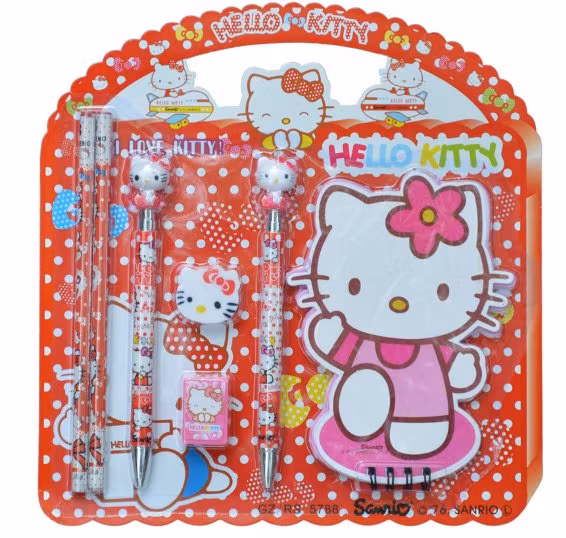 Hem › Leksaker & Barnartiklar › Hello Kitty Skrivset 7 delar. Hello Kitty Skrivset 7 delar. Färg Rosa RÖD 0 kr 79 kr Hello Kitty Skrivset 7 delar.1 st anteckningsblock ,1 st suddgummi ,1 st pennvässare, 2 st blyertspennor , 1st automatisk penna1st kulspetspenna