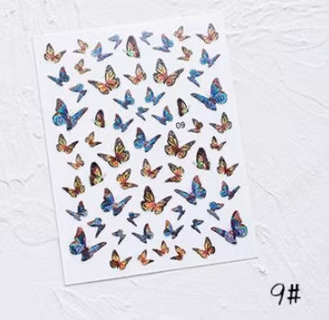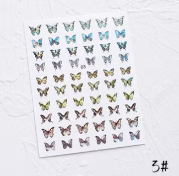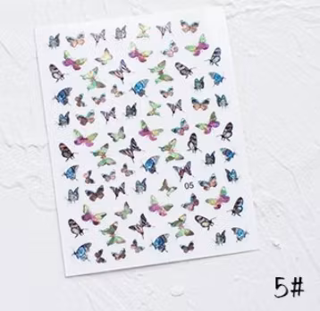 Nagel Konst Laser Fjäril Klistermärken Metall Hologra