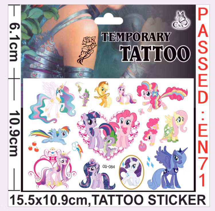 Hem › Tatuering › Little Pony Tatuering Little Pony Tatuering Modell Bild 1 Bild 2 Bild 3 Bild 4 Bild 5 Bild 6 Bild 7 0 kr 25 kr Little Pony Tatuering